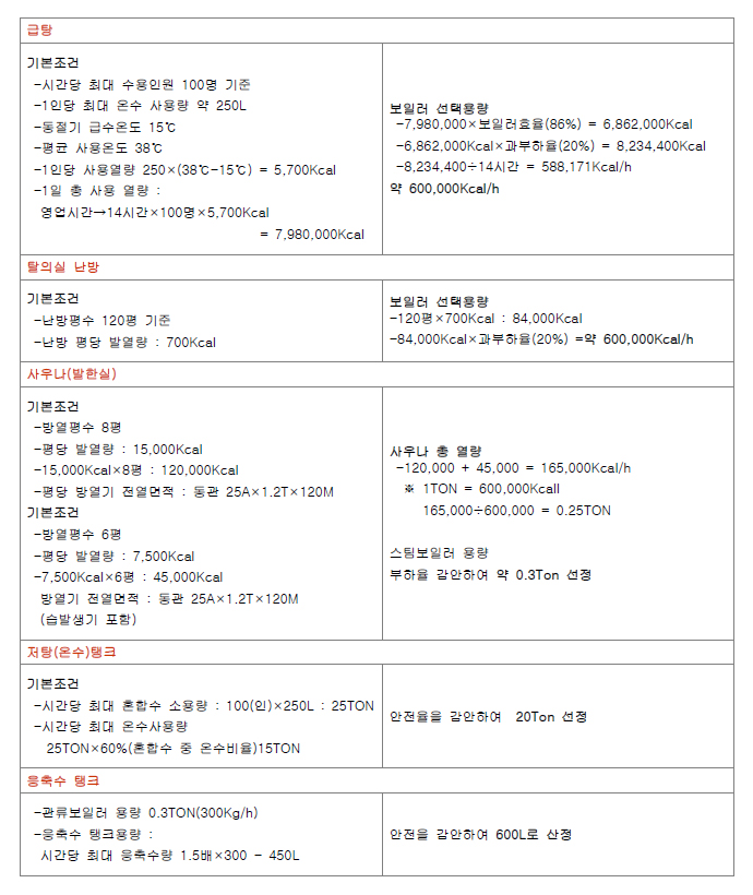 신규로 개업하는 경우 고객 수의 예측이 어려우므로 향후 성업시에도 온수사용에 문제가 없도록