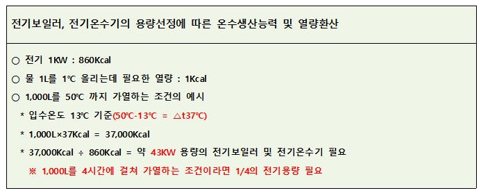 -샤워용으로 하절기만 사용하거나, 사용량이 많지 않을 경우 6KW/h 가능함.