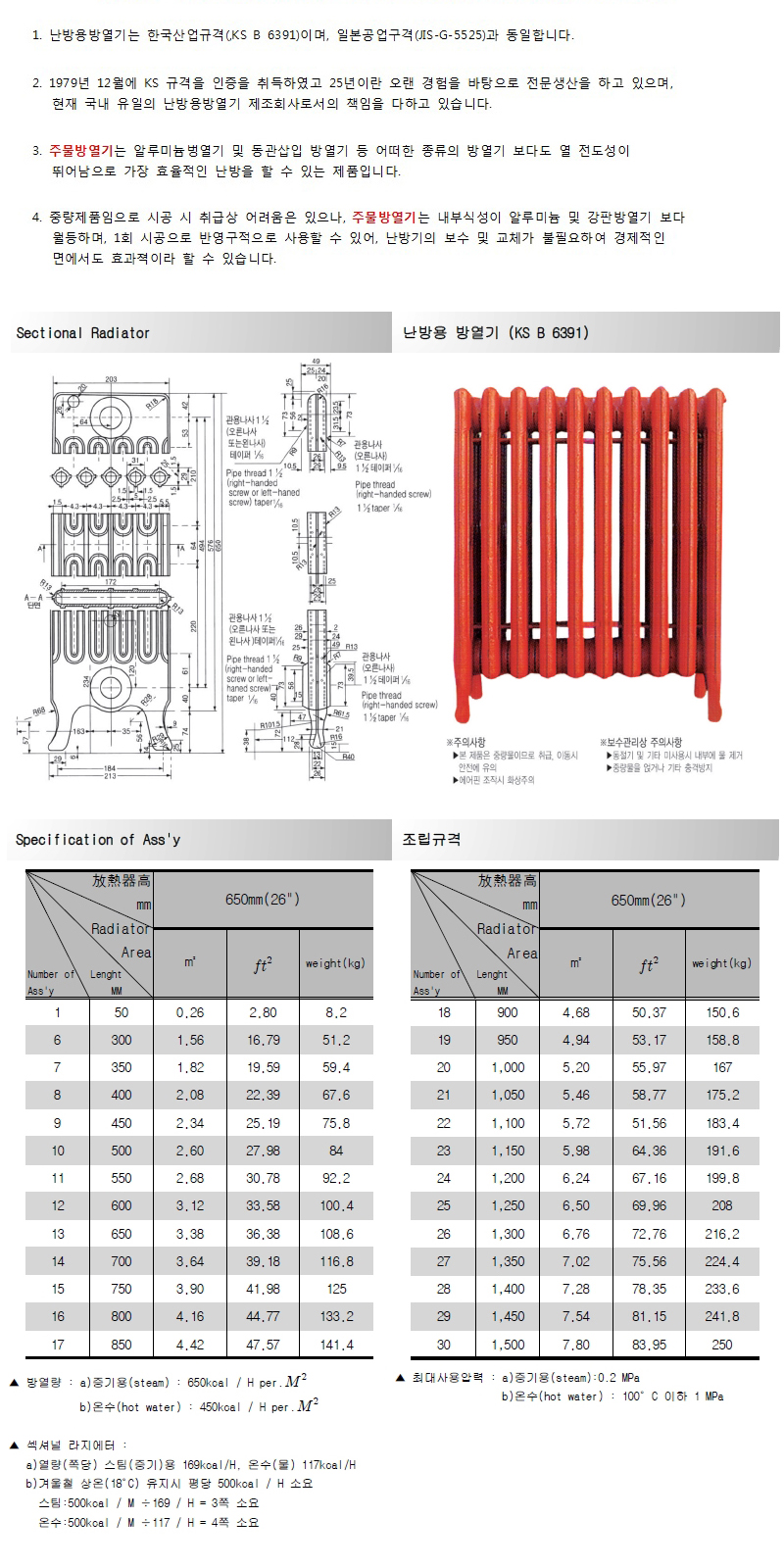 온수스팀방열기주물방열기(1주당가격)부가세포함,착불배송