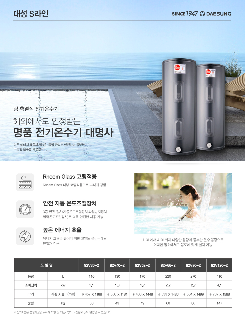 Rheem축열식전기온수기130L/1.3KW(림그라스)부가세포함,배송비별도