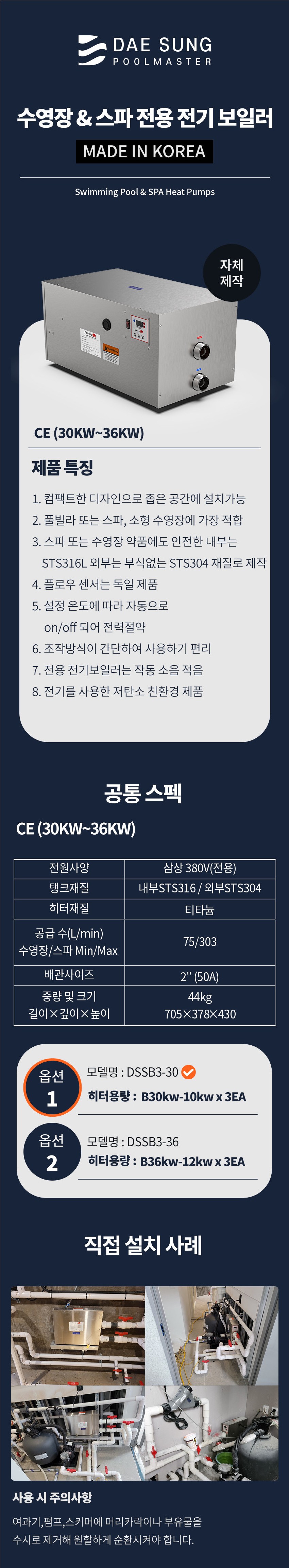 풀,스파전용전기보일러30KW(25,800Kcal/h)STS304,STS316,TT